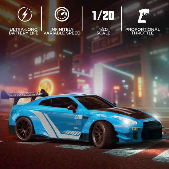 Race 1:20 RC Drift Car 4wd, lumière LED, 2 batteries bleues