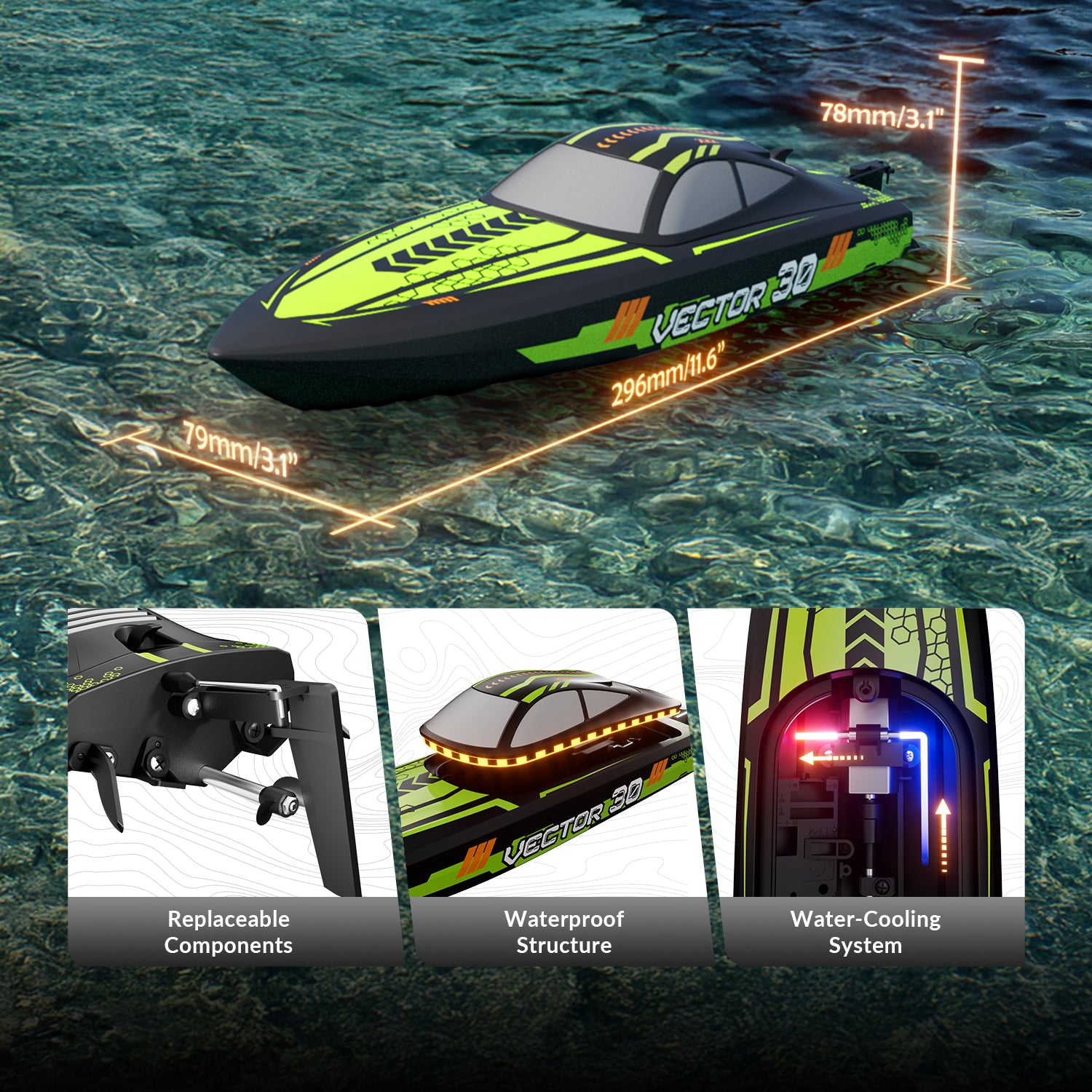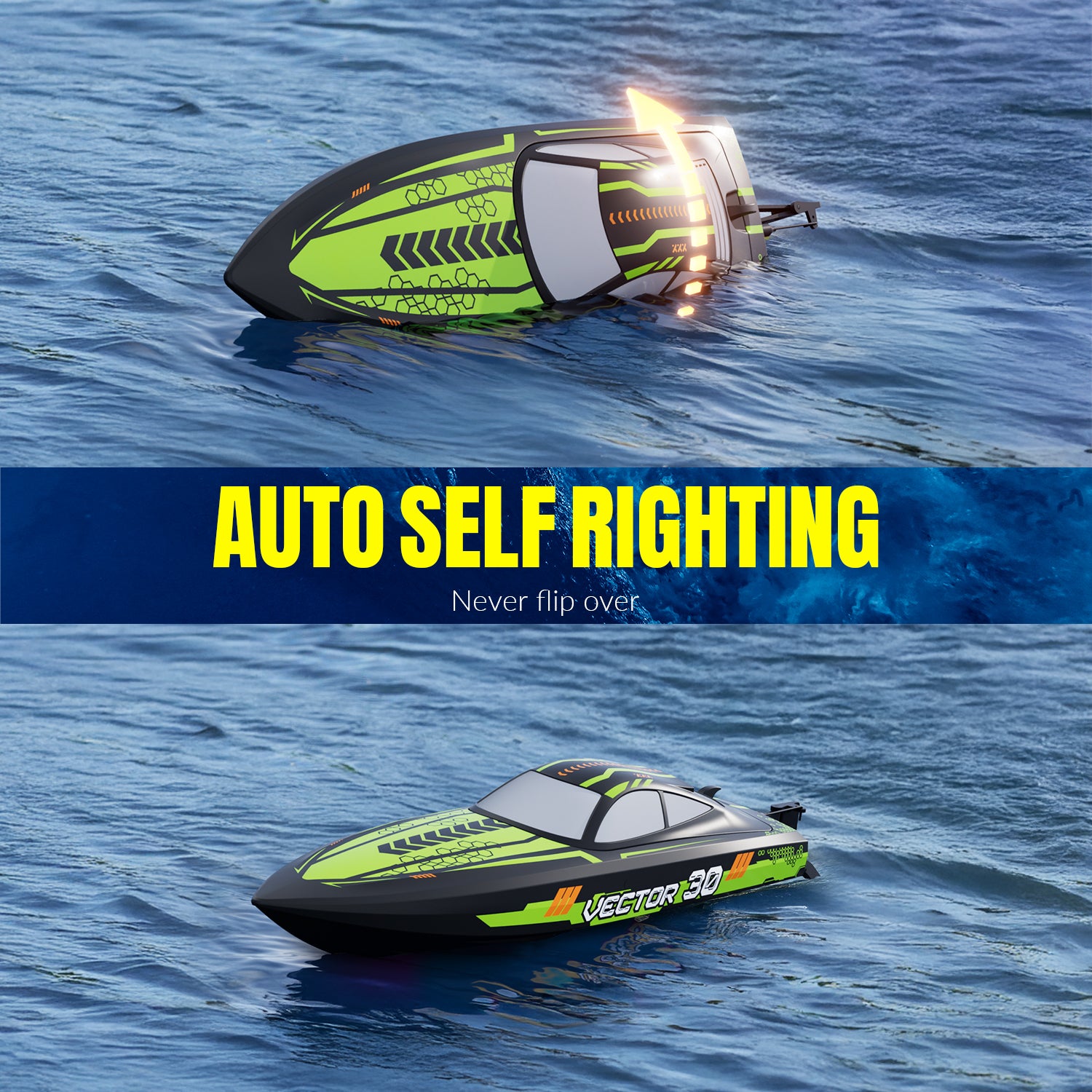 VOLANTEXRC VectorS Bateau télécommandé à grande vitesse sans balais avec retour automatique à redressement automatique, fonction d'inversion pour les lacs et les rivières.