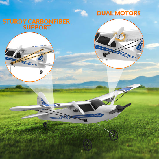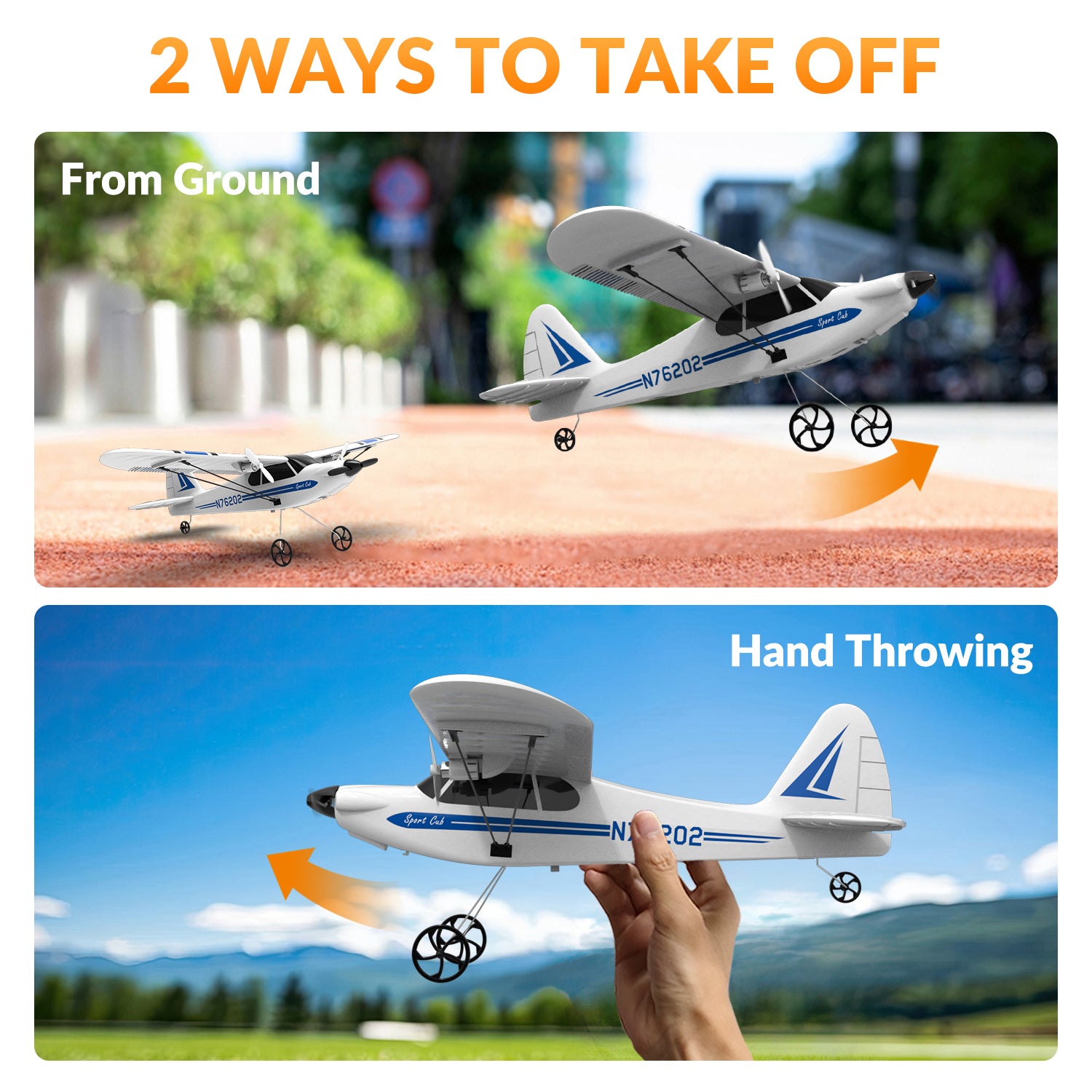 READY TO FLY FOR QUICK START - The box comes with everything needed to get the airplane start like transmitter, 2pcs rechargeable lipo batteries, spare propellers etc, only request 4pcs AA battery for transmitter. Just take it out of the box then pilots can start to have fun with this airplane.